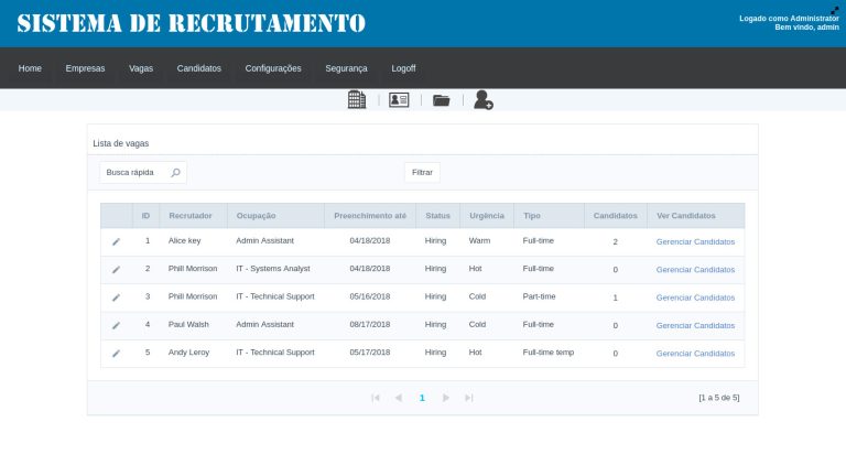 - Lista de Entrevistadores | Adicionar | Bloquear (motivo)