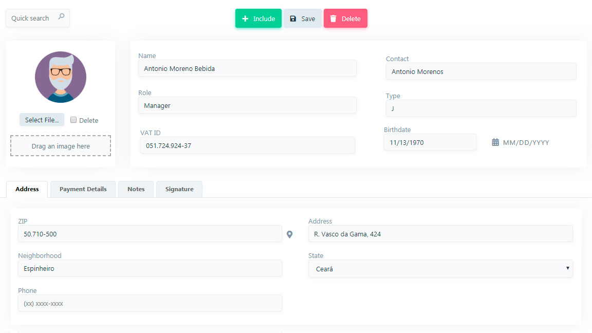 This includes the creation and maintenance of auxiliary records in the system, such as customer groups, product categories, and other information that will assist in the system’s operation and management (combobox).